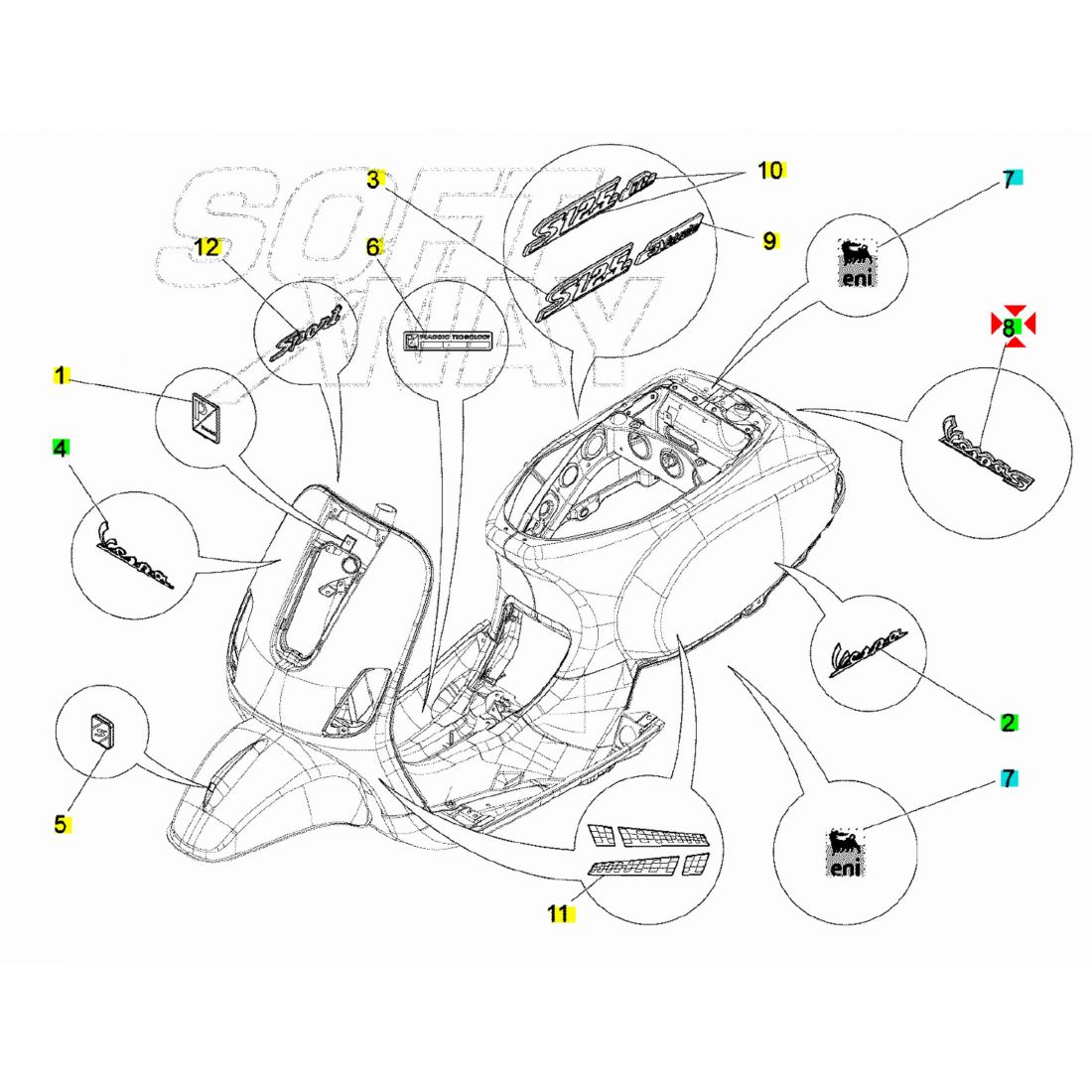 Targhetta posteriore Vespa S - 673278