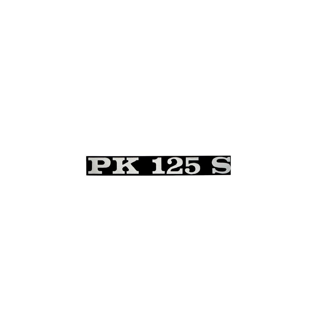 (R.22494) Vendo emblema sportello COFANO laterale nuovo per Piaggio Vespa PK 125 S simile a codice Piaggio 195635 con scritte grigie su sfondo nero , per spaccato vedere foto