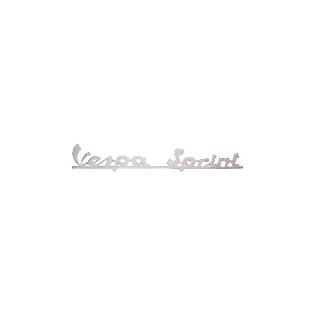 (R.23543) Vendo emblema posteriore nuovo per Piaggio Vespa Sprint 150 VLB1 dal 1967 al 1969 , con scritta Vespa Sprint argentata con 4 pioli e lunghezza 173 mm.
