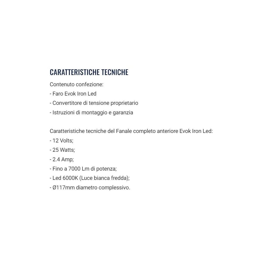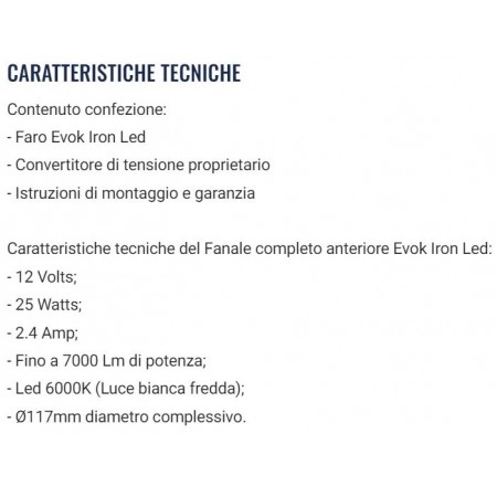 (R.19804) Vendo fanale anteriore a Led nuovo per Piaggio Vespa 125 Primavera ed ET3 marca Iron Led Evok da 12 Volt e 25 Watt fino a 7000 Lm di potenza con Led 6000K luce bianca fredda e diametro 117 mm , per caratteristiche tecniche vedere foto