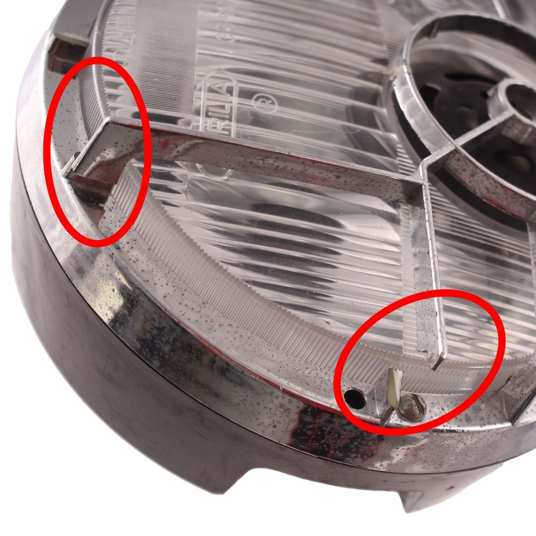 (R.24414) Vendo fanale anteriore con clacson usato rotto solo griglia cromata superiore come evidenziato e visibile in foto , marca Aprilia per moto d'epoca , marchiato 35991 DGM7963PCXLA CROSS LINE