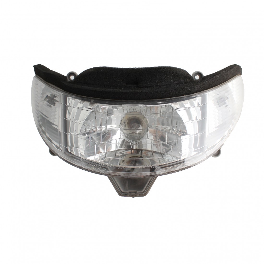 (R.14462) Vendo fanale anteriore usato per Kymco Dink 50 - 125 - 200 cc dal 1997 con codice 00150901 marchiato Kymco 0208 W3W e13 50R-00 0170 MB/PL 57R-01 0243 , per applicazioni vedere foto