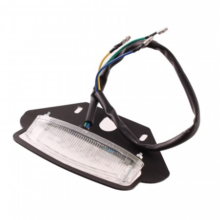(R.17859) Vendo faro posteriore a led usato per moto varie completo di staffa di supporto con lente marchiata 12V 1.0/5.0W TIANALI E11 50R-005108 con interasse viti del fissaggio del vetro da 95,75 mm e interasse fori di fissaggio nella staffa 69,75 mm , per misure vedere foto