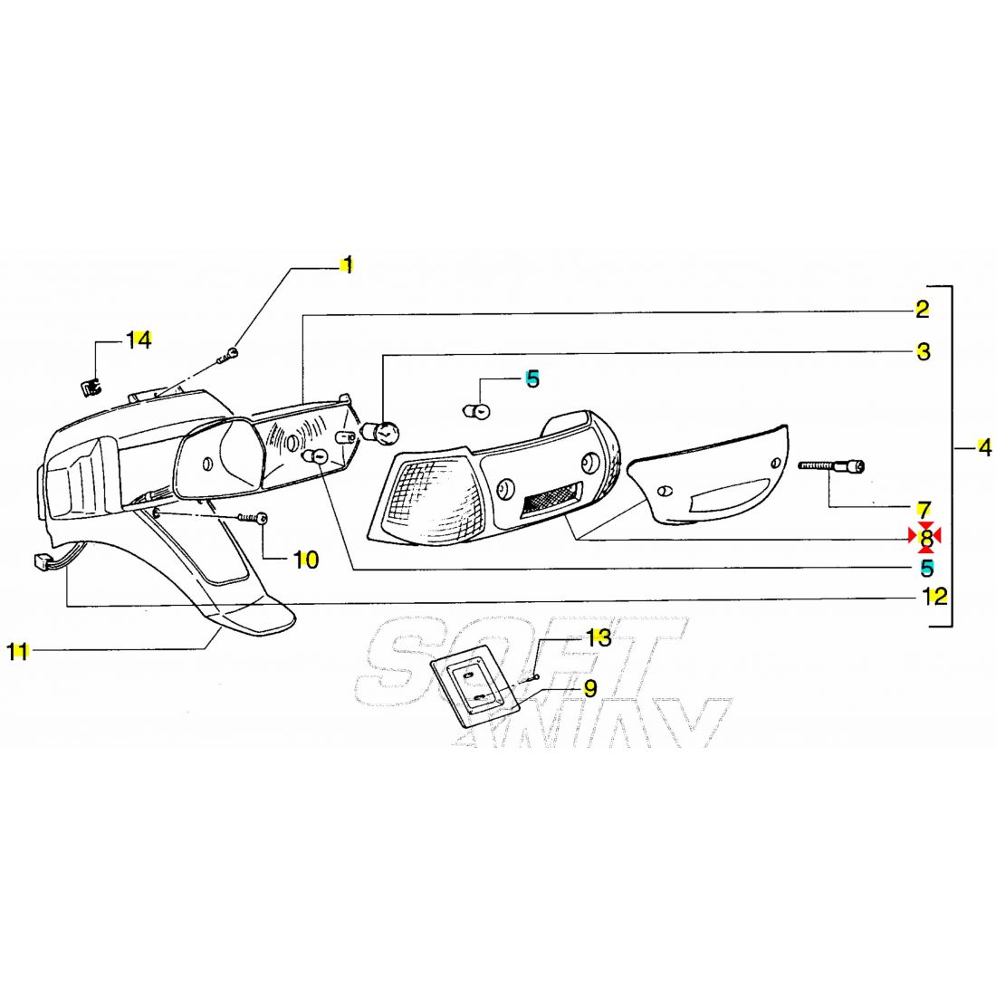 (R.21891) Vendo vetro fanale posteriore parte centrale nuovo simile a codice Piaggio 21891 con leggeri segni di magazzinaggio per Piaggio Zip SP 50 cc dal 1996 - Zip RST 50 cc dal 1996 - Zip Fast Rider RST 50 cc dal 1996 , per applicazioni e spaccato vedere foto