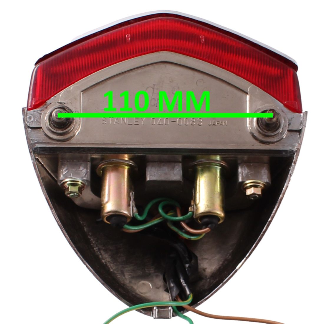 (R.23750) Vendo fanale posteriore usato per moto custom probabilmente Honda marca Stanley marchiato 040 - 0088 , con interasse fori di fissaggio 110 mm , per misure vedere foto