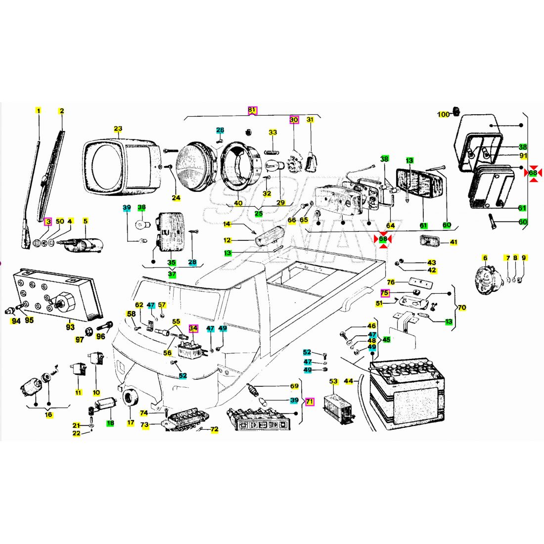 (R.24248) Vendo fanale posteriore sinistro nuovo senza luce targa per Piaggio Ape TM P 50 dal 1985 - Ape Car P2 P3 220 dal 1972 - Vespa Car P2 220 dal 1972 , originale Piaggio con codice 155632 , marchiato Triom 3210010 DGM 12763 12765 12766 , per applicazioni e spaccato vedere foto