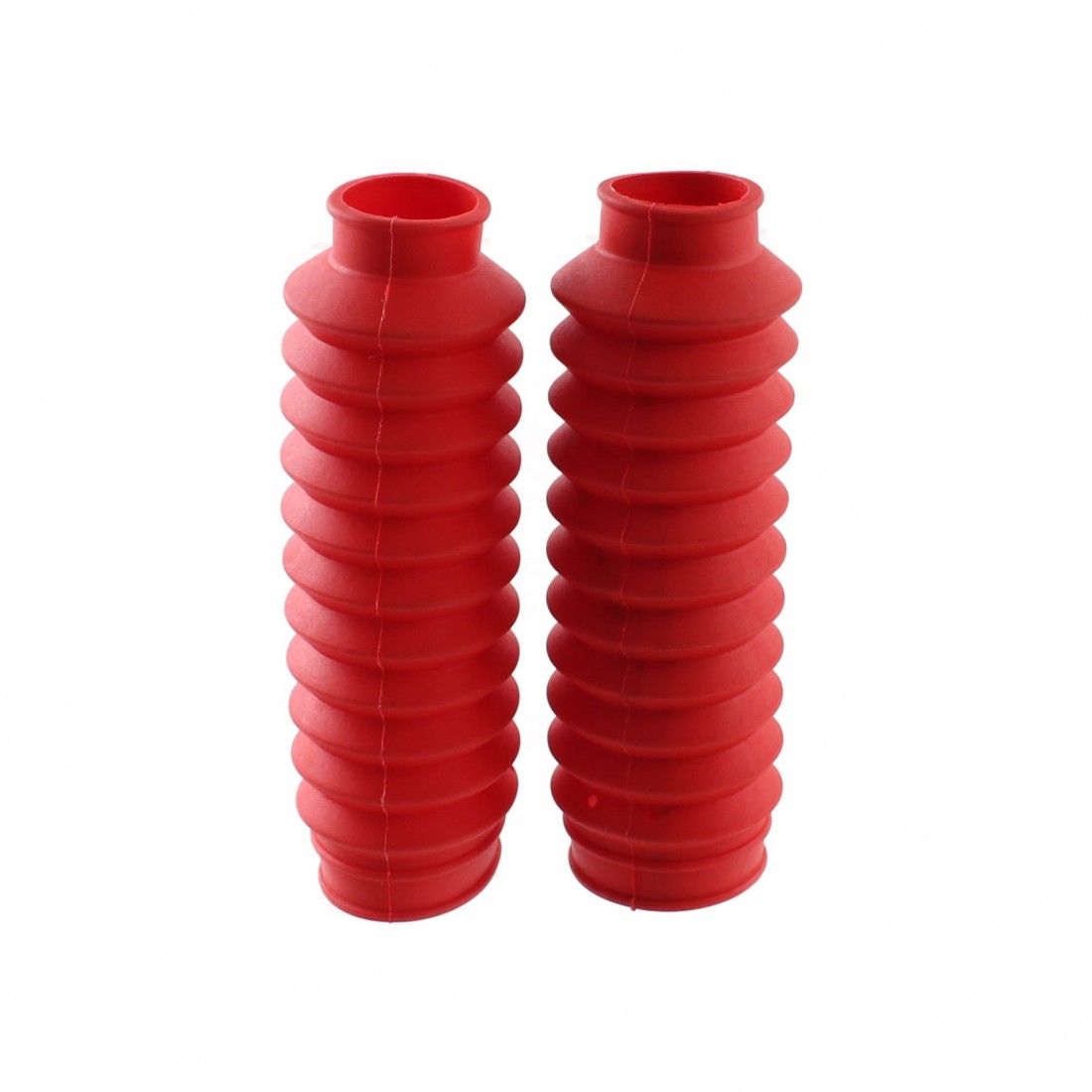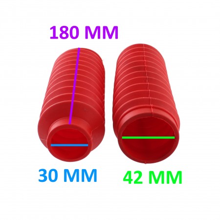 (R.15441) Vendo coppia soffietti forcelle per ciclomotori vari marca Adecar in gomma di colore rosso con diametro di 30 mm e 42 mm e lunghezza di 180 mm , per misure vedere foto , il prezzo si intende per la coppia