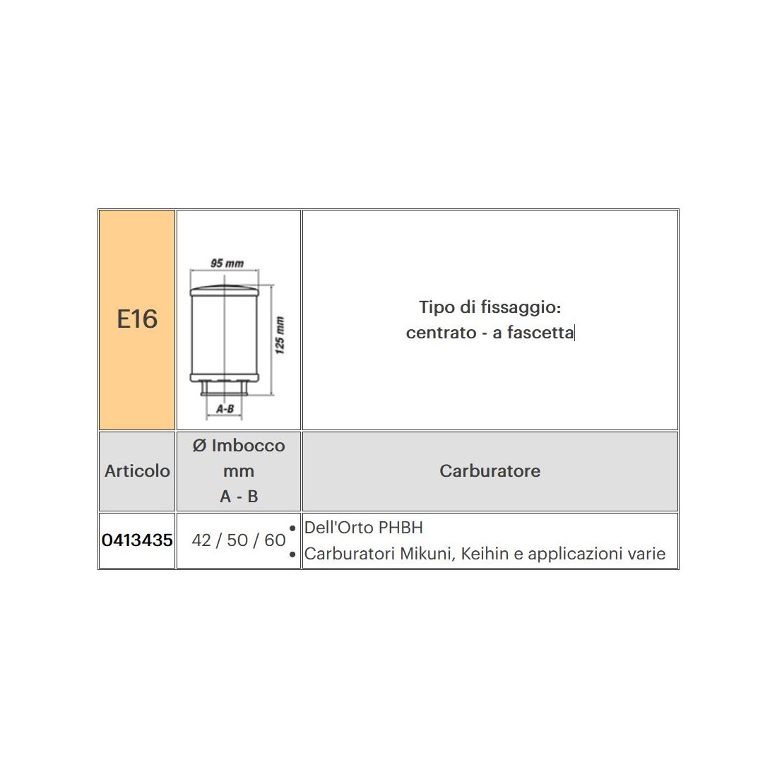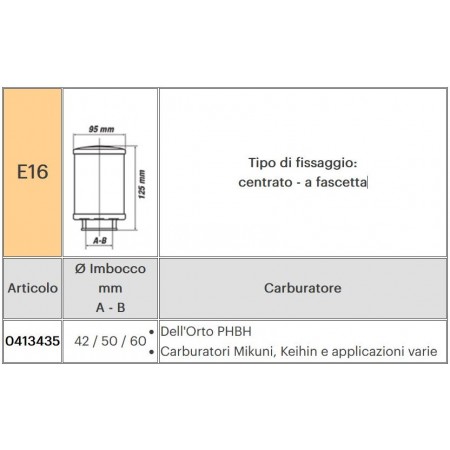 Filtro aria Malossi E16 0413435 PHBH Mikuni Keihin