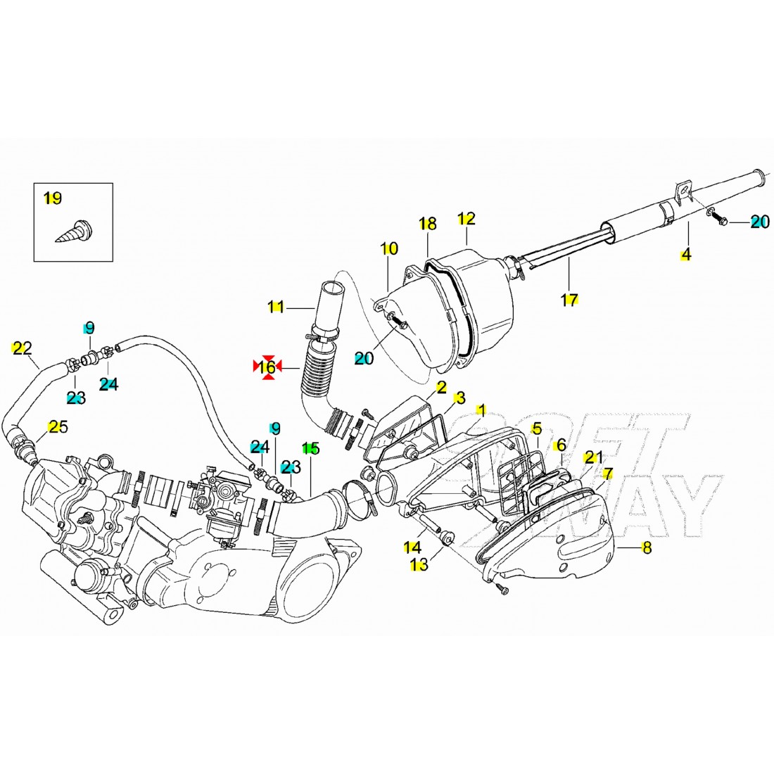 (R.16244) Vendo manicotto di aspirazione nuovo per scooter Aprilia Leonardo - Leonardo ST 125 cc dal 1996 , simile a codice Aprilia AP8120888 , per applicazioni ed esploso vedere foto