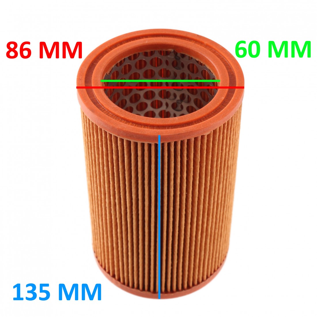 (R.18219) Vendo filtro aria nuovo per Moto Morini Excalibur dal 1992 e Moto Morini Kanguro con codice 320188 con diametro interno di 60 mm diametro esterno di 86 mm e altezza di 135 mm , per misure vedere foto
