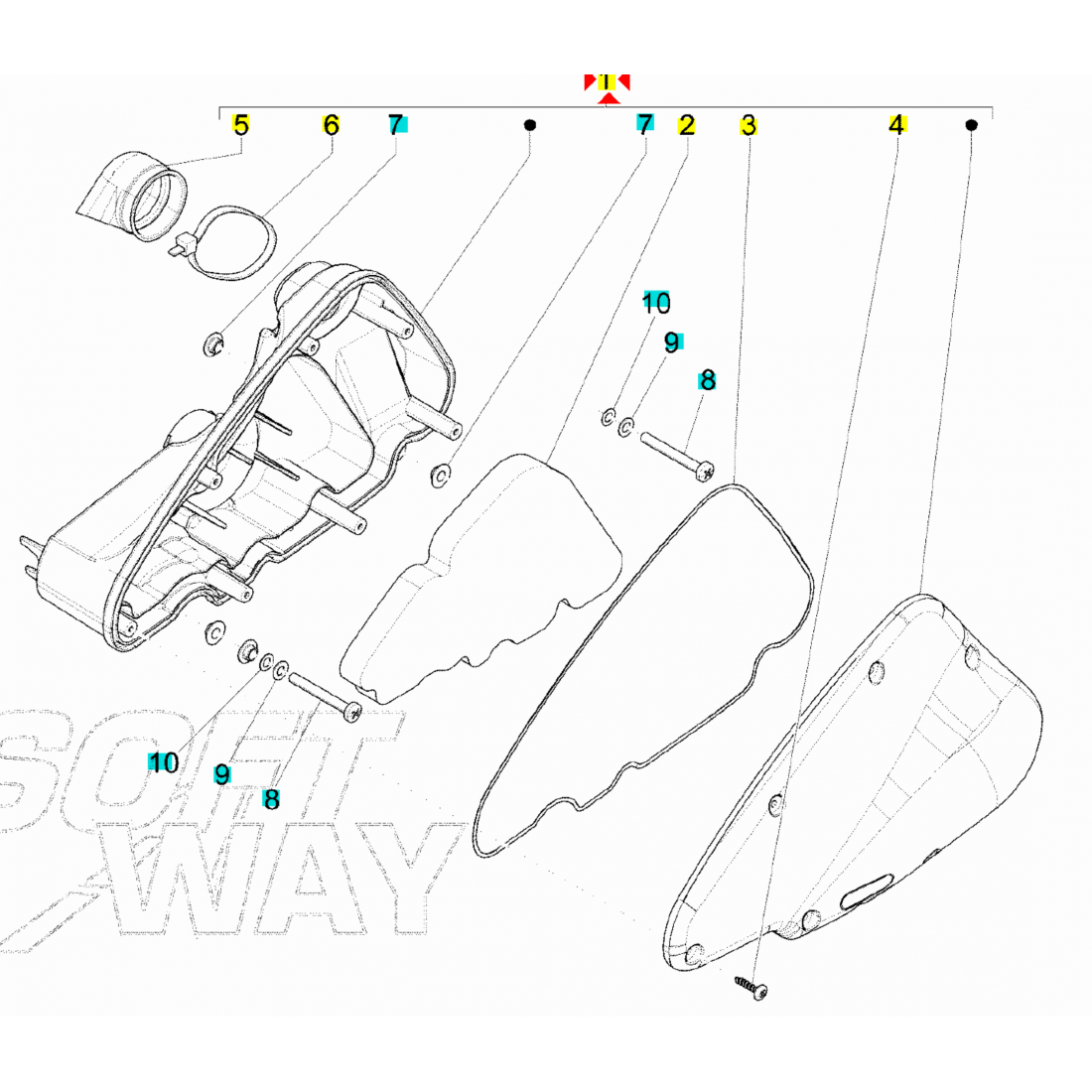 (R.20512) Vendo scatola aria completa e nuova per Piaggio Liberty 50 cc quattro tempi dal 2006 al 2017 con codice simile a Piaggio 845676 , per applicazioni e spaccato vedere foto