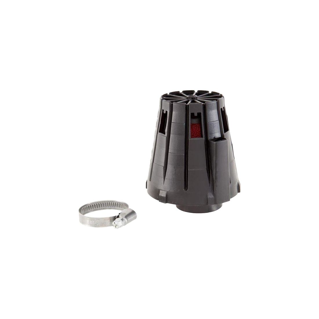 (R. 24742) Vendo filtro aria nuovo Malossi E5 con spugna tossa e carcassa nera per carburatori dell'orto Phva 12 o Mikuni VM 19 22 con filetto interno diametro 35 mm modello decentrato dritto , per misure vedere foto