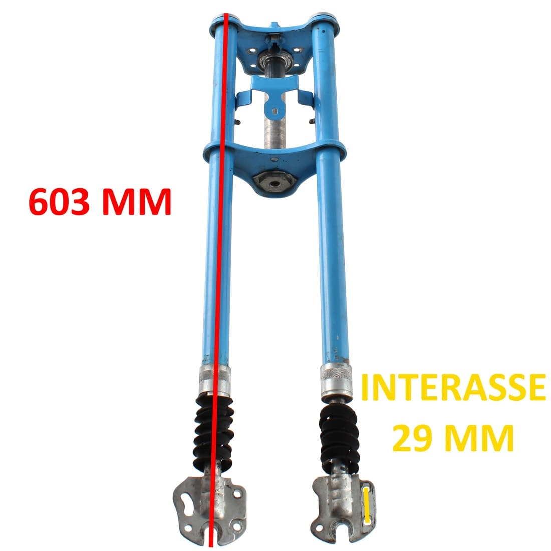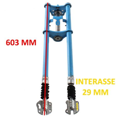 (R.11964) Vendo forcella anteriore usata per Motobecane  di colore azzurro con soffietti rotti e senza chiave bloccasterzo , il prezzo si intende per singolo pezzo , per misure vedere foto