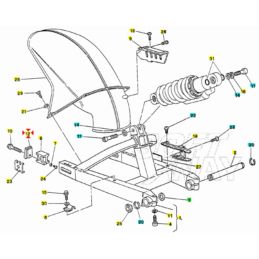 (R.16409) Vendo coperchio forcellone nuovo di color oro per Ducati Supersport 400 - 600 - 620 - 750 - 800 - 900 cc  dal 1991con codice 37310081A , per applicazioni ed esploso vedere foto