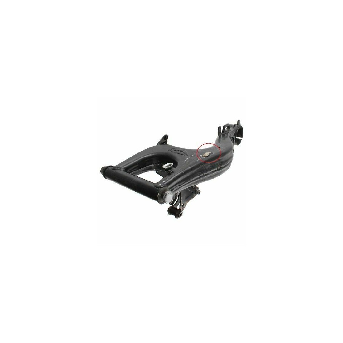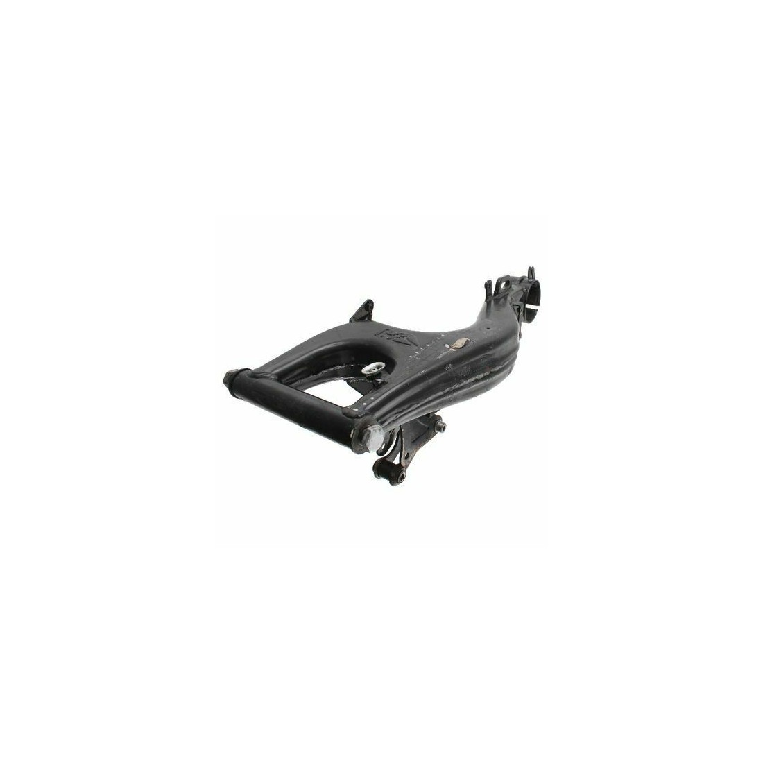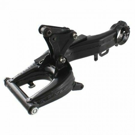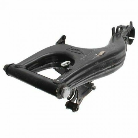 (R.12782) Vendo forcellone usato per Aprilia RS 50 cc dal 1991 fino al 1998 - Europa 50 cc dal 1991 - AF1 Futura 50 cc dal 1990 con codice AP8232972 di colore nero con 1 attacco rotto come da foto completo di staffa sostegno sospensione posteriore , per applicazioni vedere foto