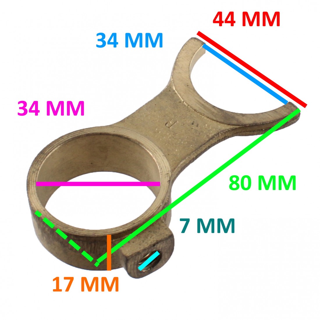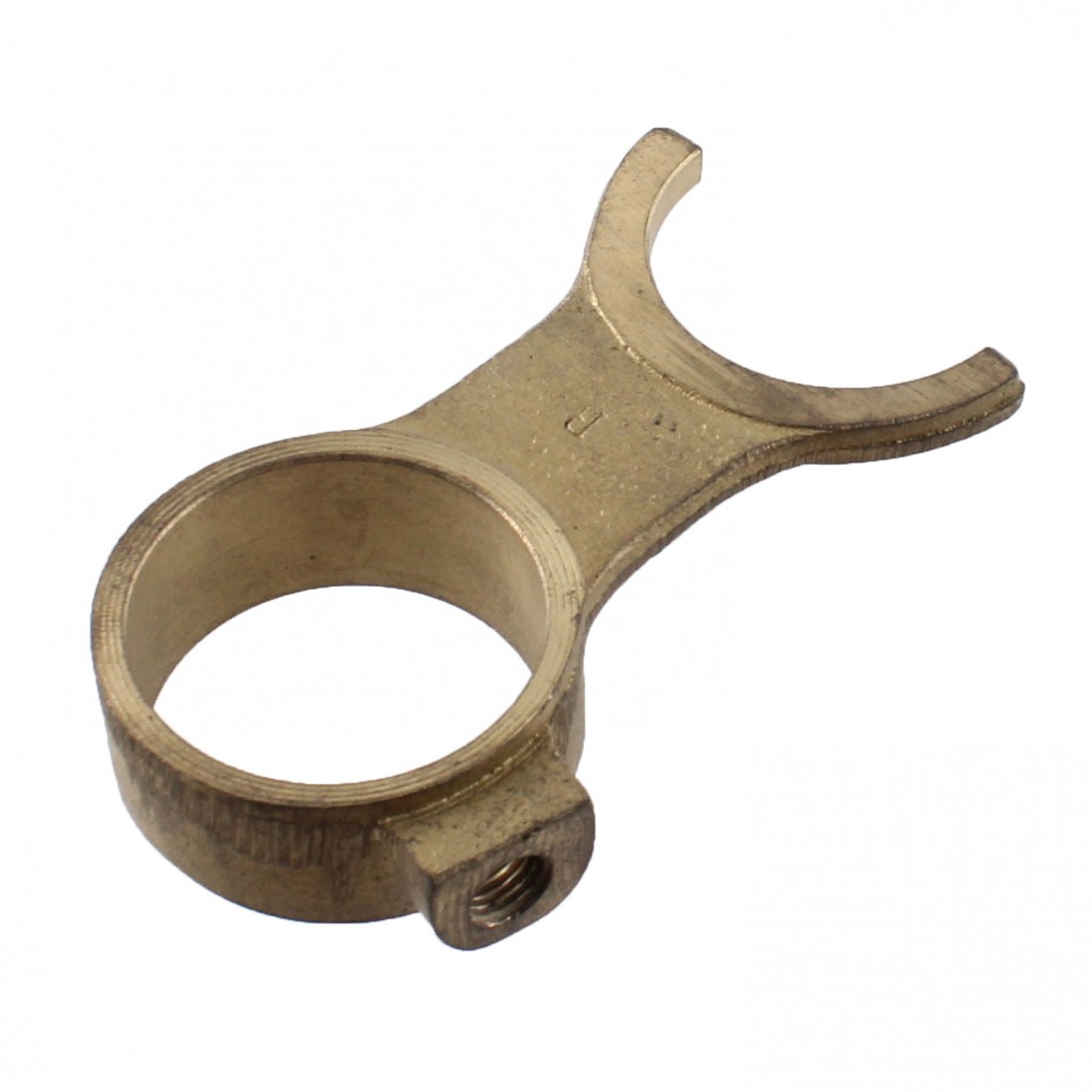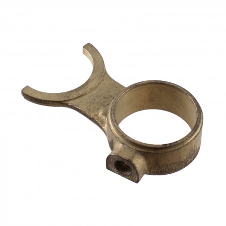 (R.14142) Vendo forcella selettore cambio marce desmodromico nuova probabilmente per Benelli e Motobi 5 marce o Moto Guzzi Nibbio con diametro foro 34 mm e lunghezza totale 80 mm con altezza 17 mm di colore dorato , per misure vedere foto