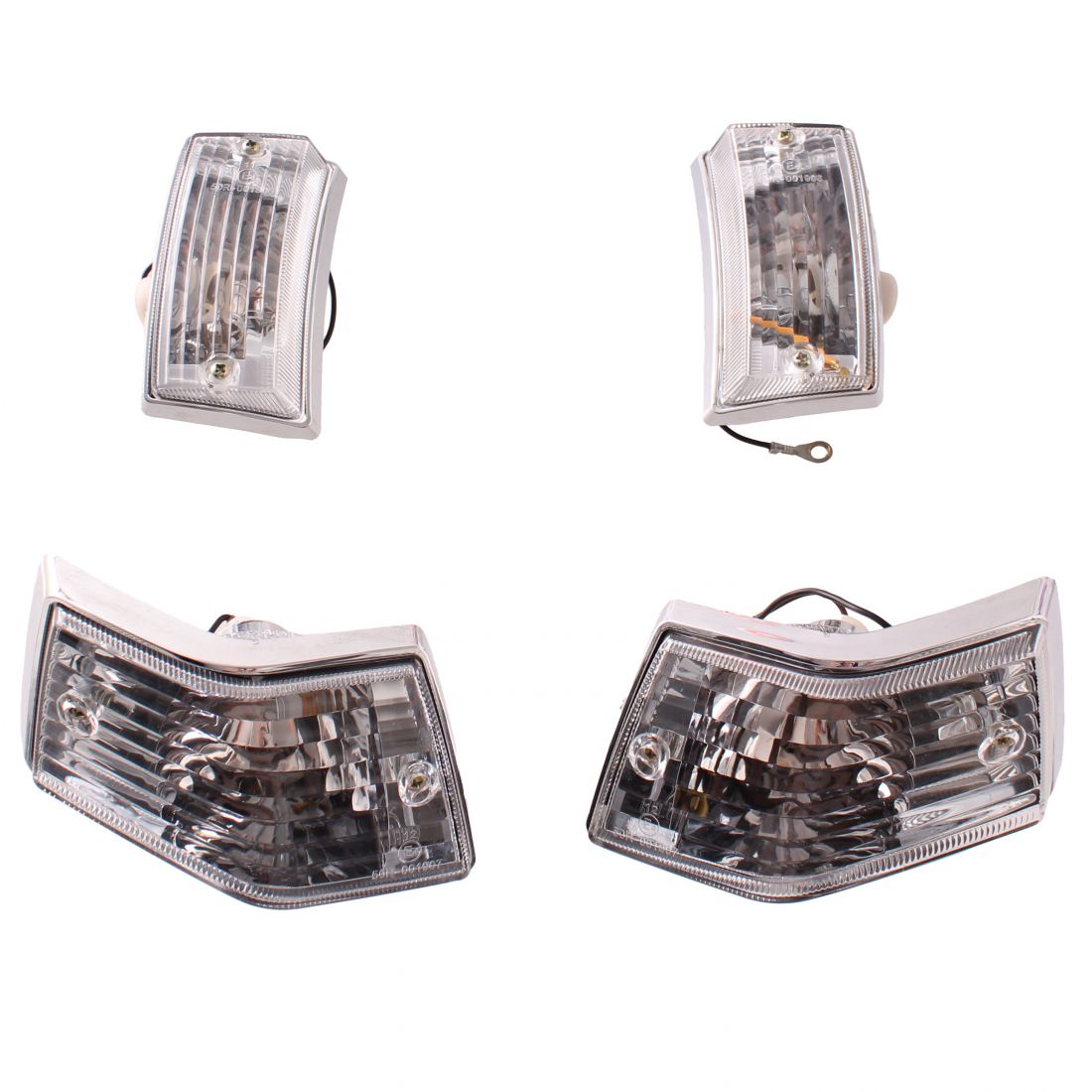 (R.23876) Vendo serie di frecce con vetro trasparente e carcassa cromata nuova per LML Star modello 2016 si possono montare anche su Vespa PX , sia anteriori che posteriori , il prezzo si intende per l'intero kit