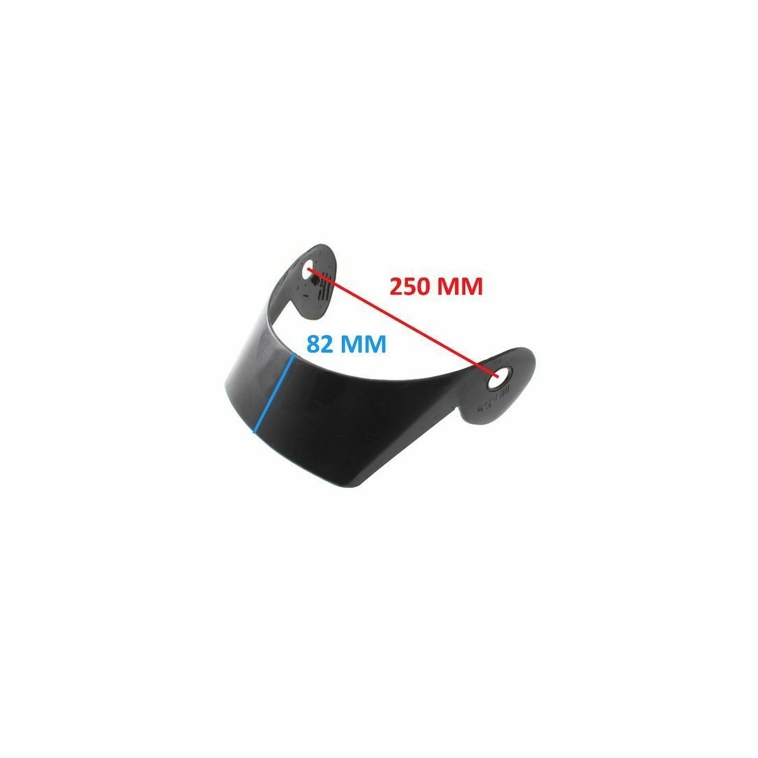 (R.12236) Vendo frontalino parasole squadrato usato per caschi cross AGV d'epoca in plastica di colore nero con lunghezza 82 mm e interasse attacchi 250 mm , per misure vedere foto