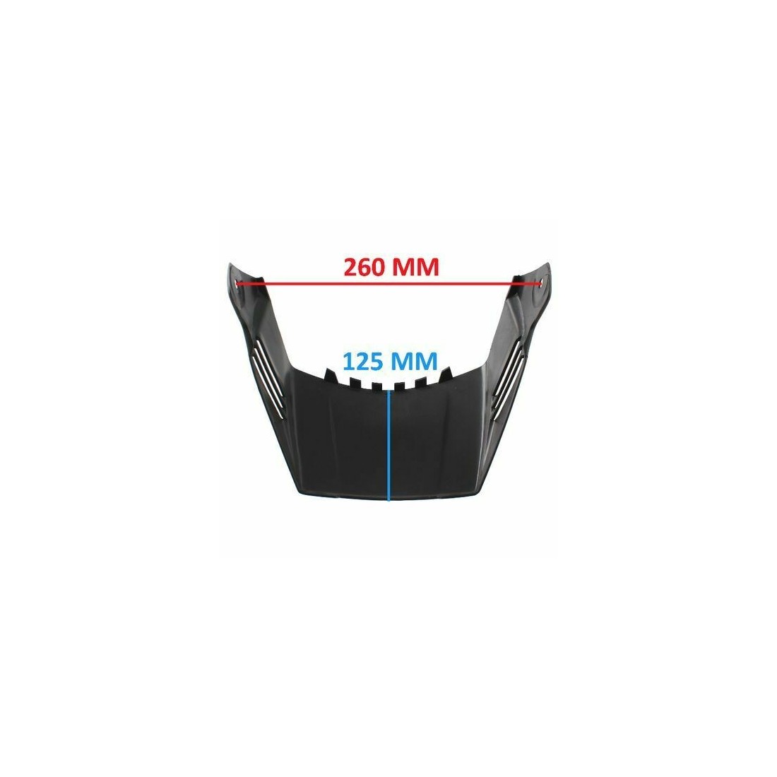 (R.12239) Vendo frontalino parasole squadrato nuovo per caschi cross Nolan vintage di colore nero con lunghezza 125 mm e interasse attacchi 260 mm , per misure vedere foto