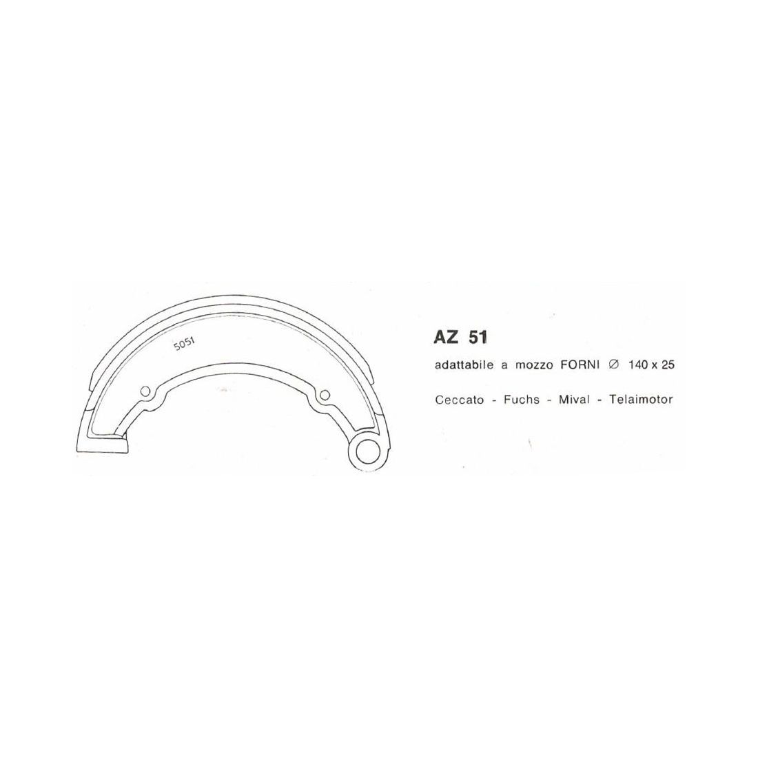 (R.23079) Vendo coppia di ganasce del freno nuova marca Forma con codice AZ 51 per mozzi Forni tipo Ceccato - Fuchs - Mival - Telaimotor con misure 140 mm x 25 mm , il prezzo si intende per la singola coppia