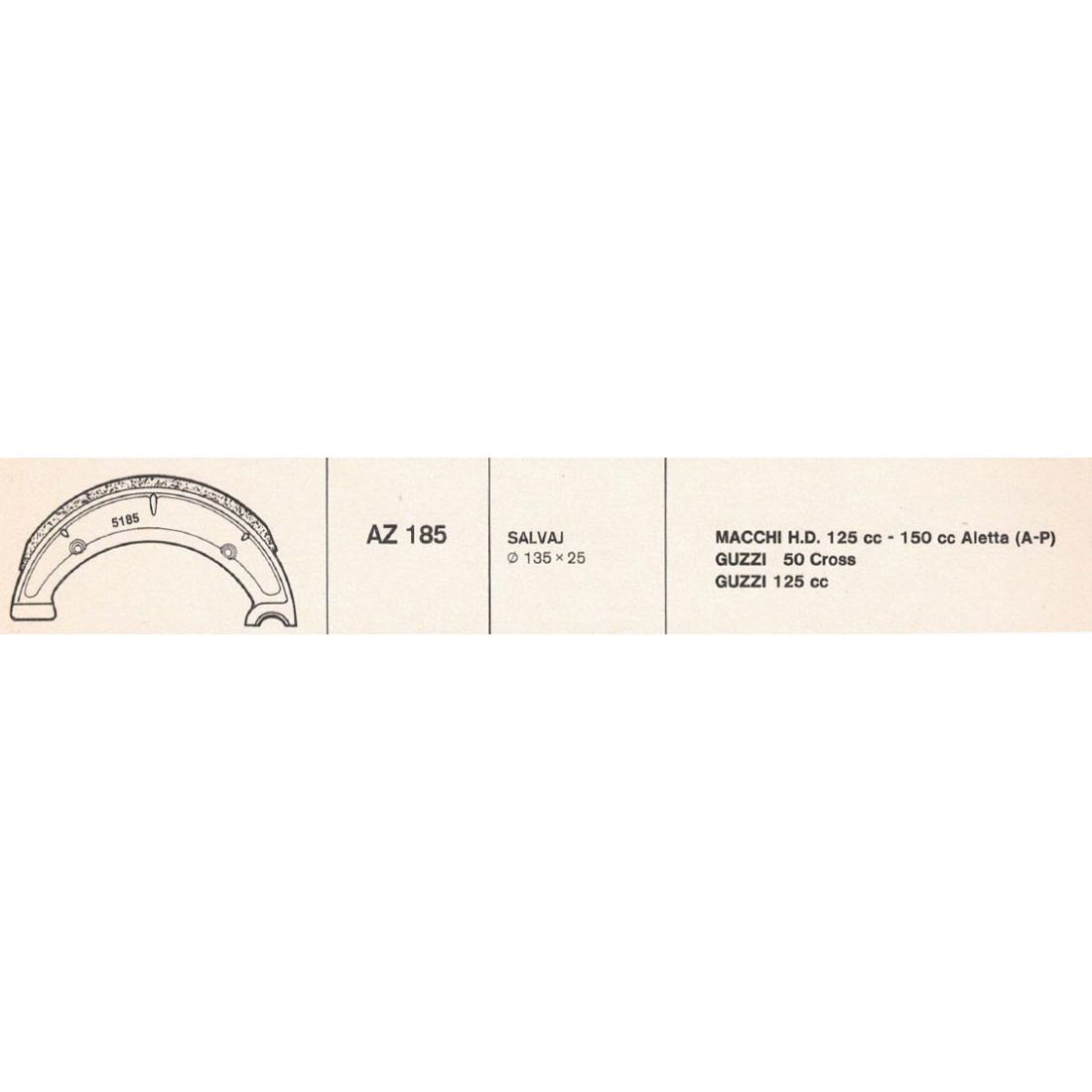 (R.23081) Vendo coppia di ganasce del freno nuova marca Forma con codice AZ 185 per mozzo Salvaj tipo Macchi H.D. 125 e 150 cc Aletta - Guzzi 50 Cross - Guzzi 125 cc , con misure 135 mm x 25 mm , il prezzo si intende per la singola coppia