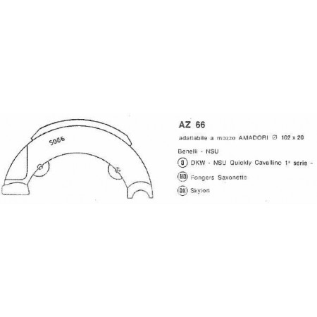 (R.10200) Vendo kit ganasce freno nuovo con codice AZ 66 adattabile a mozzo Amadori con misure 102 x 20 per ciclomotori e motocicli Benelli e NSU