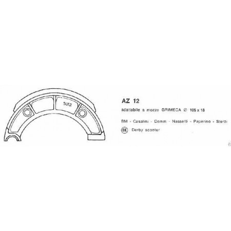 (R.10190) Vendo kit ganasce freno nuovo con codice AZ 12 adattabile a mozzo Grimeca con misure 105 x 18 per ciclomotori e motocicli BM, Casalini , Demm , Nassetti , Paperino , Sterzi