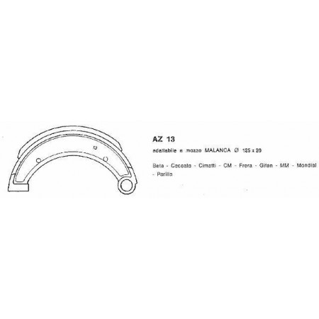 (R.10191) Vendo kit ganasce freno nuove con codice AZ 13 adattabile a mozzo Malanca con misure 125 x 20 per ciclomotori e motocicli Beta , Ceccato , Cimatti , CM , Frera , Gitan , MM , Mondial , Parilla