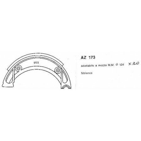 (R.9009) Vendo coppia ganasce freno nuove con codice forma AZ 173 adattabile su mozzo Malanca con misure 124 x 20, il prezzo si intende per singola coppia
