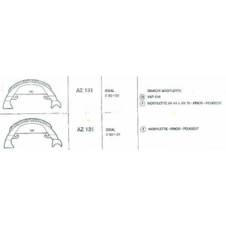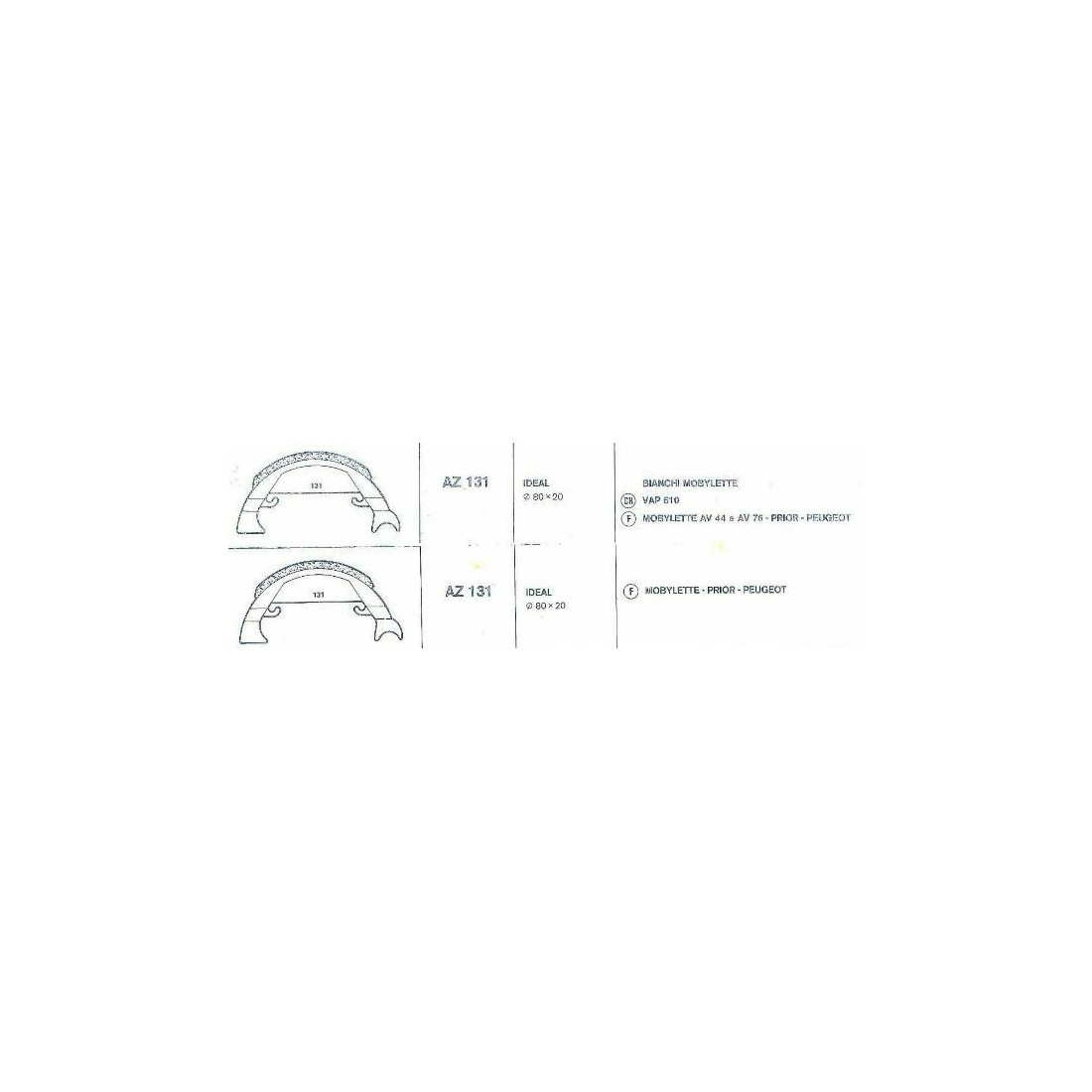 (R.4353) Vendo coppia ganasce freno nuove per Mobylette AV 4 AV 76 - Prior - Peugeot marca FORMA con codice AZ 131 adattabili a mozzo con diametri 80 x 20 mm , il prezzo si intende per singola coppia