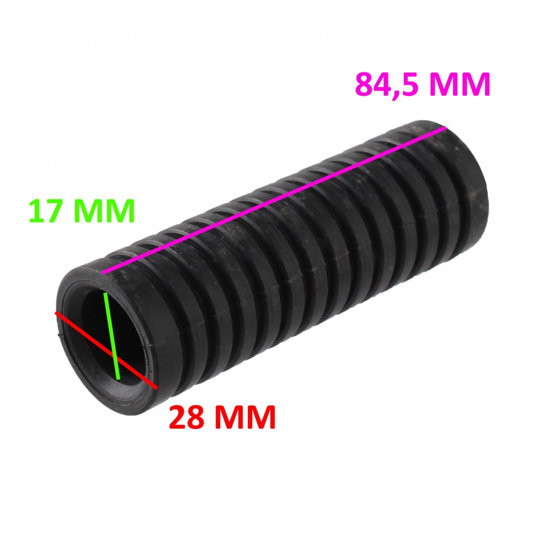 (R.16288) Vendo gommino poggiapiedi nuovo per Moto Ducati con diametro interno di 17 mm diametro esterno 28 mm e lunghezza di 84,5 mm con codice Ducati 080369110