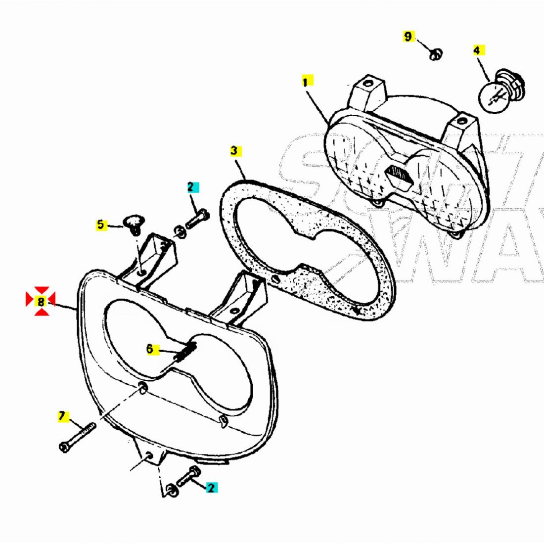 (R.24326) Vendo cornice faro anteriore nuova per Yamaha BW's e MBK Booster 50 dal 1988 , simile a codice Yamaha 3VLH419600 , per applicazioni e spaccato vedere foto