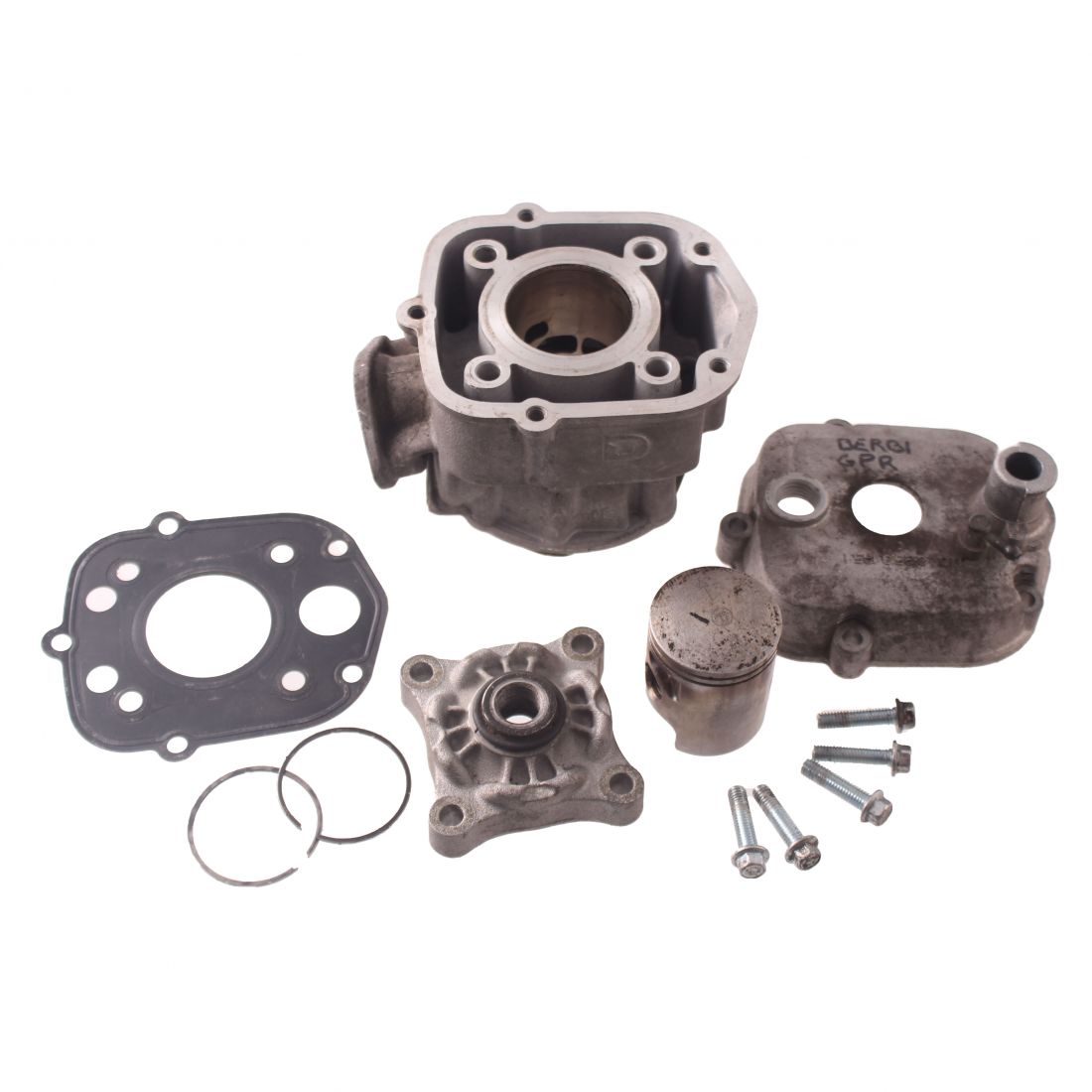 (R.19686) Vendo cilindro con testa e pistone usato per Derbi GPR Racing 50 cc dal 2004 al 2005 con codice Derbi del cilindro 00H05007124 e codice della testa 00H02512015 , il prezzo si intende per l'intero kit , per applicazioni vedere foto