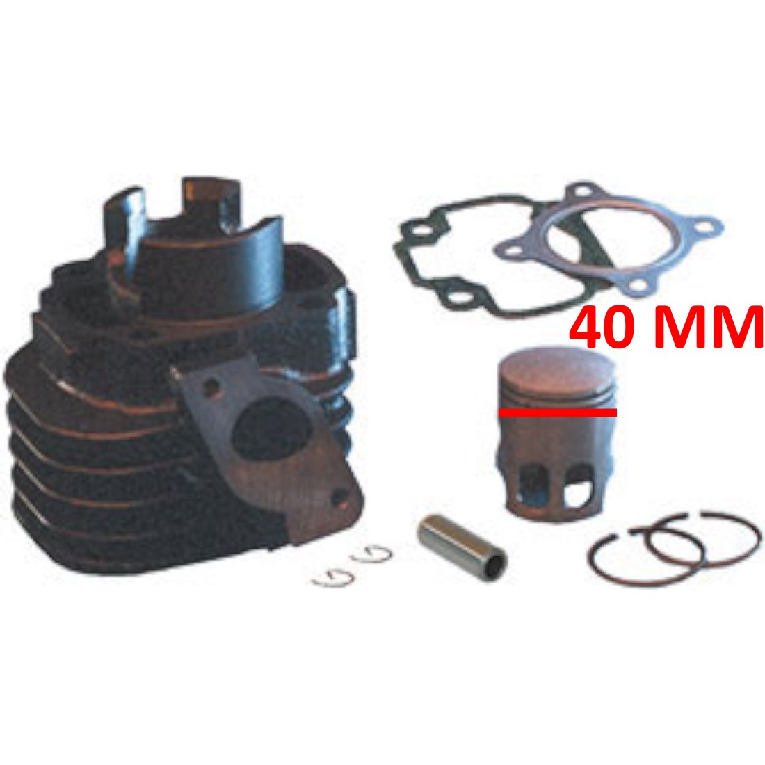 (R.19802) Vendo cilindro aria tipo originale con pistone da 40 mm nuovo per scooter con motore Minarelli Orizzontale tipo MBK e Yamaha marca Teknoetre con codice C00110 , il prezzo si intende per l'intero kit , per misure vedere foto