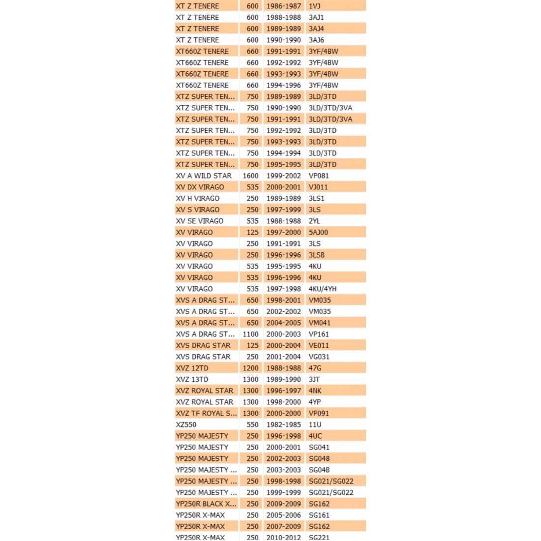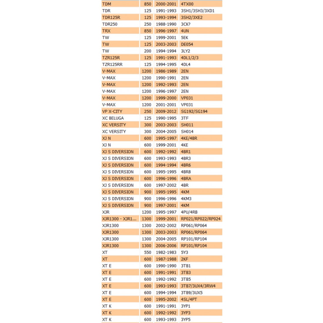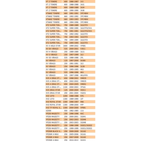 (R.18204) Vendo guarnizione or nuova per Yamaha DT - FJ - FZ - RD - TDM - TRX - TW - TZ - V - VP - XC - XJ - XT - XV - XZ - YP - YZF 125 - 200 - 250 - 300 - 350 - 400 -535 - 550 - 600 - 750 - 850 - 900 - 1000- 1100 - 1200 - 1300 - 1600 cc dal 1982 con codice 1VJ144620000 , per applicazioni vedere foto