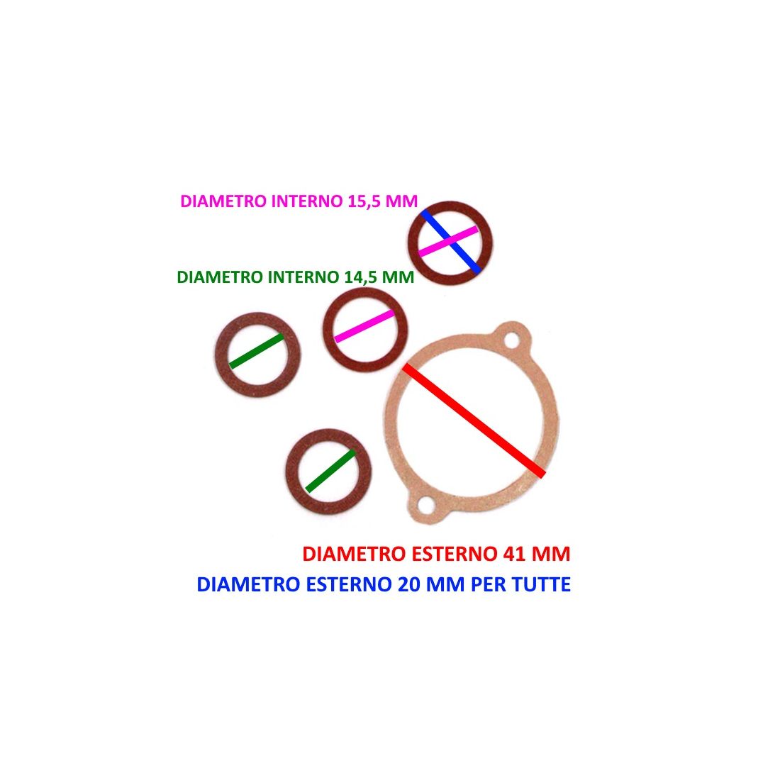 (R.19969) Vendo serie guarnizioni del carburatore Dell'Orto UB 23 nuove per Piaggio Vespa GS 150 cc per telai VS1 - VS2 - VS3 - VS4 - VS5 , diametro esterno guarnizione grande 41 mm , diametro esterno tutte e quattro guarnizioni in fibra 20 mm , diametro interno più sottili 15,5 mm , diametro interno più spesse 14,5 mm , per misure vedere foto