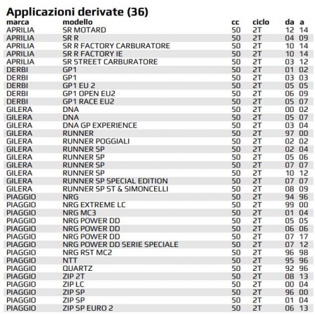 (R.20268) Vendo guarnizioni nuove del cilindro Top Due Plus da 47,6 mm per scooter con motore Piaggio 50 a liquido tipo Piaggio NRG - NTT - Quartz - Zip - Aprilia SR Street e Factory - Derbi GP1 - Gilera DNA e Runner marca Top con codice 9920660 per kit cilindro con codice 9920590 , il prezzo si intende per l'intero kit , per applicazioni vedere foto