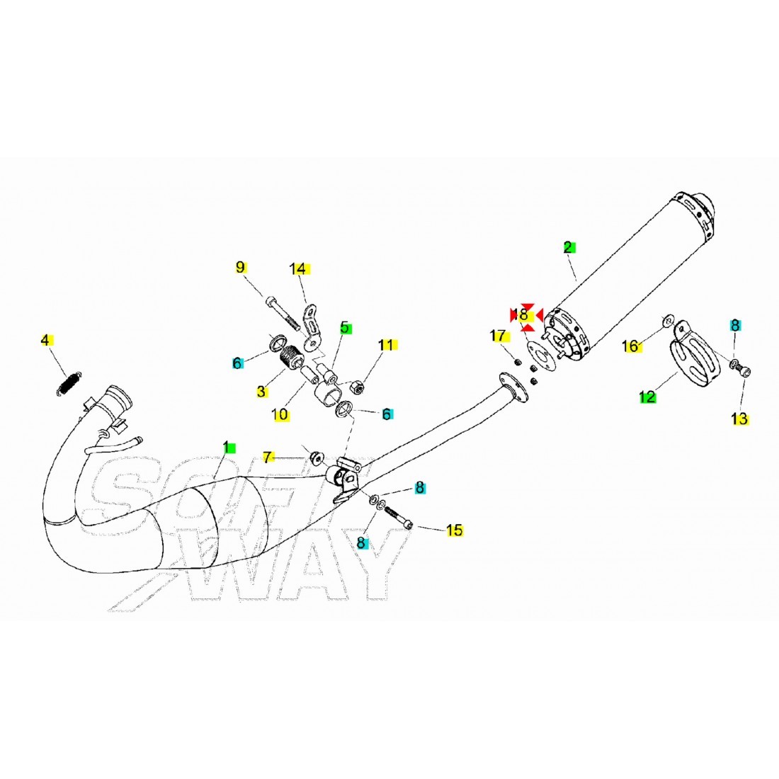 (R.21569) Vendo guarnizione del silenziare rotonda nuova con diametro esterno da 53 mm e interasse fori di fissaggio 36 mm per vari scooter e moto tipo Aprilia RS 50 - 125 e 250 cc - Tuono 50 e 125 cc - RX 125 cc - SX 125 cc - MX 125 cc , simile a codice Aprilia AP8120812 , per applicazioni con misure e spaccato vedere foto