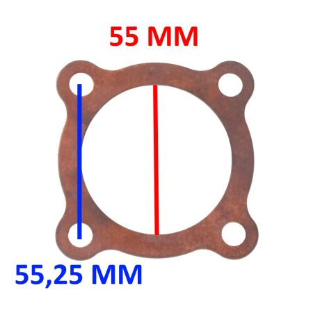 (R.22634) Vendo guarnizione di testa nuova in rame per motori Hiro per moto d'epoca tipo Aprilia MX 125 anni 78/80 con cilindro in ghisa , diametro foro interno 55 mm e interasse 55,25 mm , per misure vedere foto