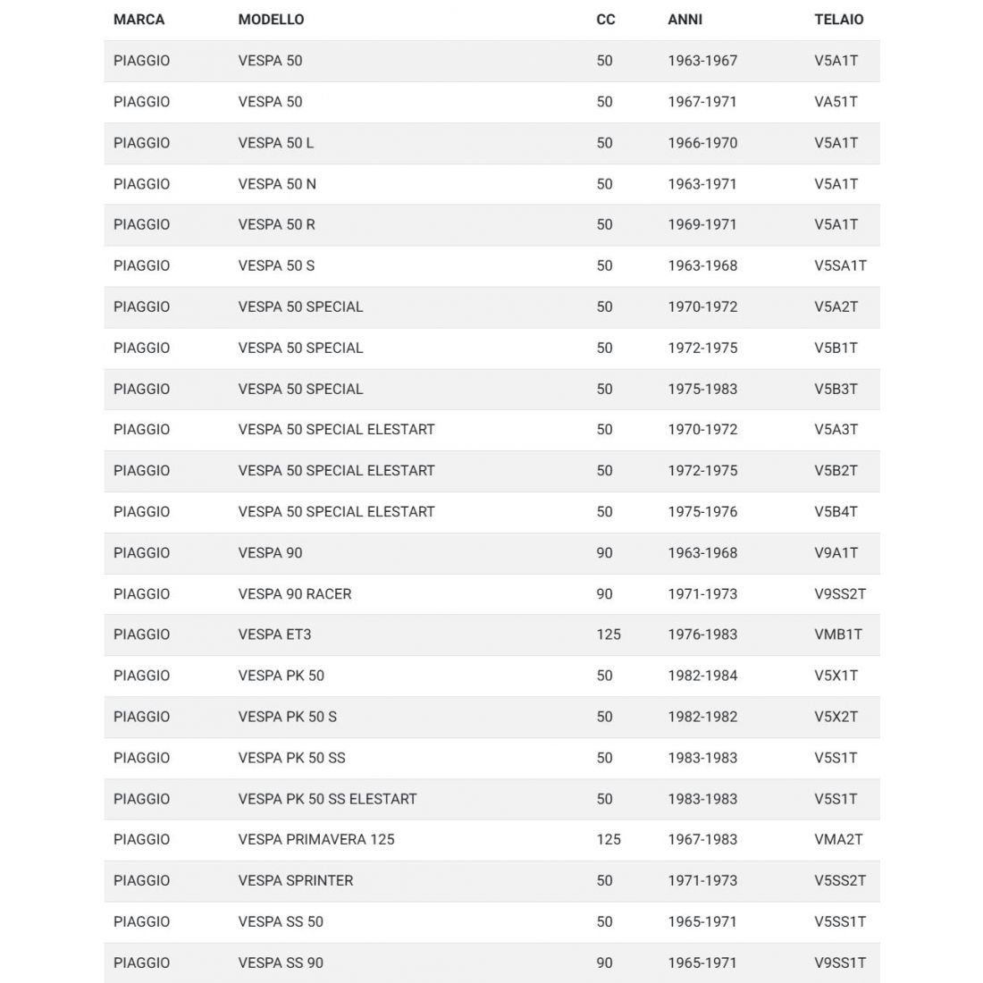 (R.23777) Vendo serie di guarnizioni nuova per Piaggio Vespa 50 L N R S Special dal 1963 - Vespa 90 e Vespa 90 Racer dal 1963 - Vespa ET3 125 - Vespa Primavera 125 - Vespa PK 50 dal 1982 - Vespa Sprinter 50 dal 1971 - Vespa SS 50 e 90 dal 1965 , per applicazioni vedere foto