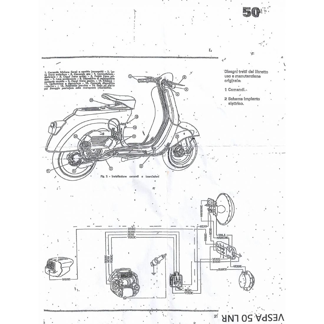 (R.23185) Vendo impianto elettrico nuovo per Vespa 50 a tre marce L N R faro tondo