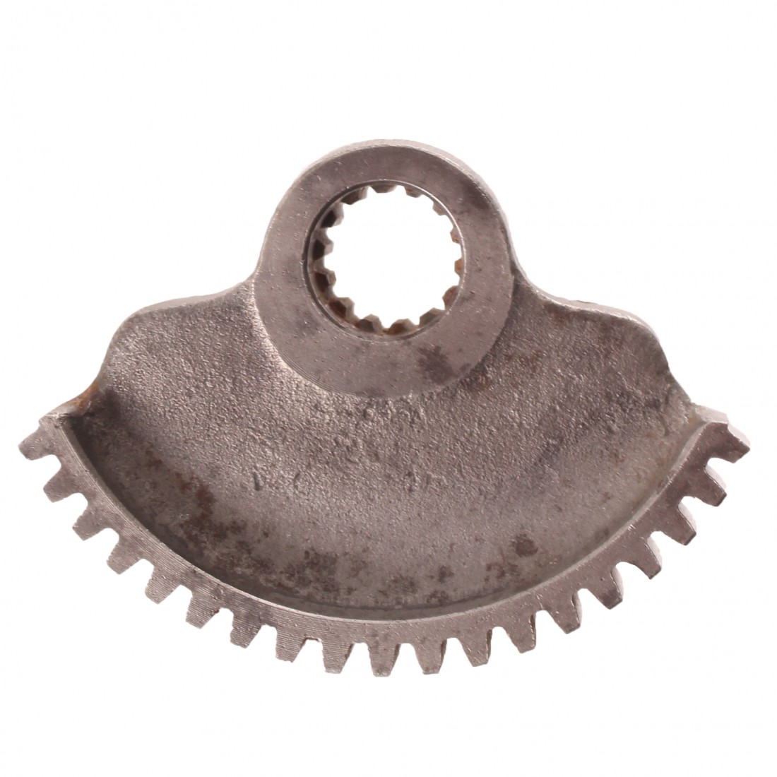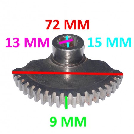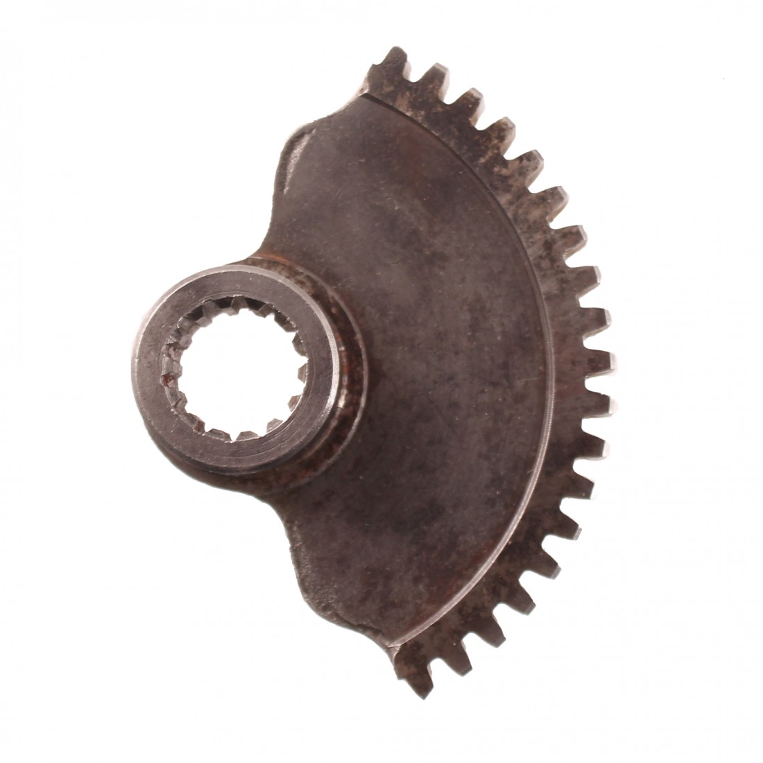 (R.20954) Vendo ingranaggio a mezzaluna nuovo per la messa in moto con 19 denti e lunghezza 72 mm , spessore 9 mm e diametro mille righe con denti 13 mm senza denti 15 mm per Lambretta D e LD 125 e 150 , per misure vedere foto