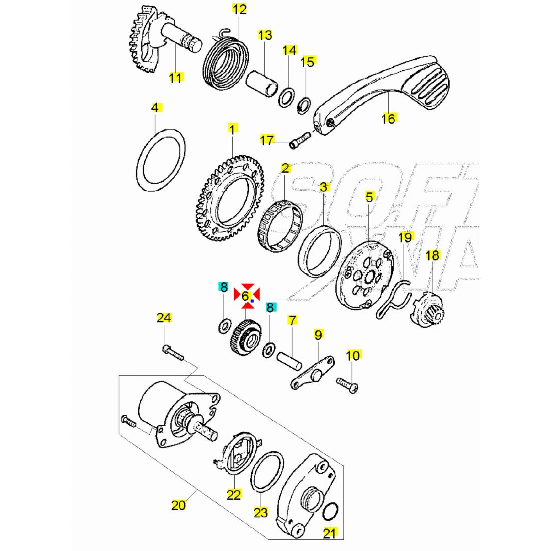 (R.22522) Vendo ingranaggio intermedio della messa in moto nuovo per Yamaha BW'S - BW'S Naked - BW'S Next Generations - CS Jog R - CW - YH Why - YH NEO'S - YQ Aerox simile a codice Yamaha 2ADE56500000 , Malaguti Centro - Ciak - F10 Restyling- F12 Phantom - F15 Fire Fox - Grizzly - Yesterday simile a codice Malaguti 74012100 , Aprilia Amico - Area 51 - Gulliver - Scarabeo - Rally - Sonic - SR simile a codice Aprilia AP8206665 , Benelli 491 RR - 491 SP - 491 Sport - K2 - Naked - Pepe con codice Benelli R19140031A0 , per applicazioni e spaccato vedere foto