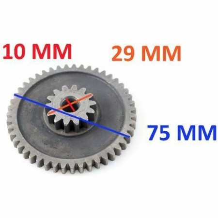 (R.6912) Vendo ingranaggio messa in moto doppio nuovo per Minarelli V1 prima serie con ingranaggio fino con numero dei denti 14 e 47 , per misure vedere foto