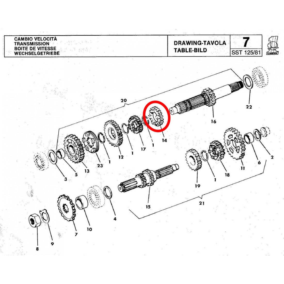 (R.18555) Vendo ingranaggio cambio seconda velocità su albero primario nuovo da 16 denti per Cagiva SST 125 cc con codice 800022395 , per applicazioni ed esploso vedere foto