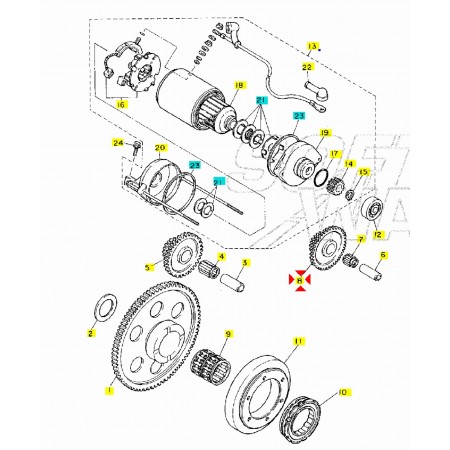 (R.21582) Vendo ingranaggio folle usato dell'avviamento elettrico con 16 e 33 denti diritti con diametro esterno da 70 mm e spessore da 7 mm per Yamaha XT Z Tenere 600 e 660 cc dal 1986 - XT E 600 cc dal 1990 - TT RE 600 cc dal 2004 - SZR 660 cc dal 1995 con codice Yamaha 1VJ155120000 , per applicazioni con misure spaccato vedere foto