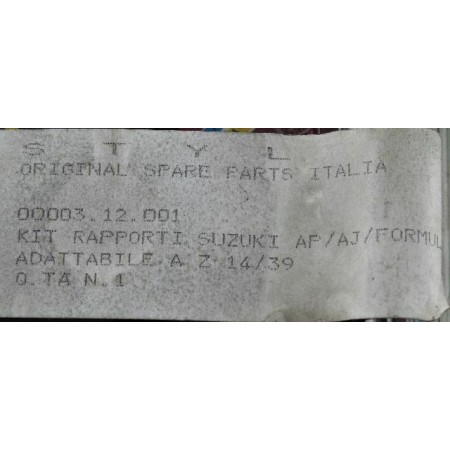 (R.5034) Vendo serie ingranaggi nuovi per rapporto allungato secondario scooter Suzuki Formula - Ap - Aj con dentatura 14 e 39 e codice Styl 0000312001 o 00003.12.001