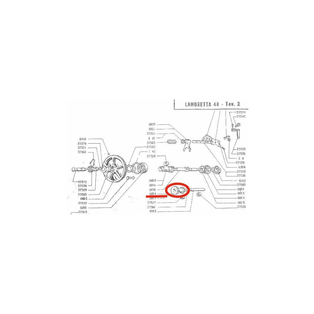 (R.8854) Vendo ingranaggio duplo folle su albero secondario nuovo per Innocenti Lambrettino 1 e 2 serie con dentatura 14 e 20 denti e codice 8804 , 515006 , per esploso vedere foto