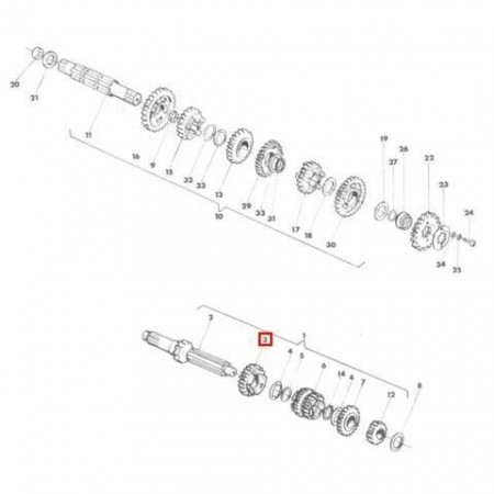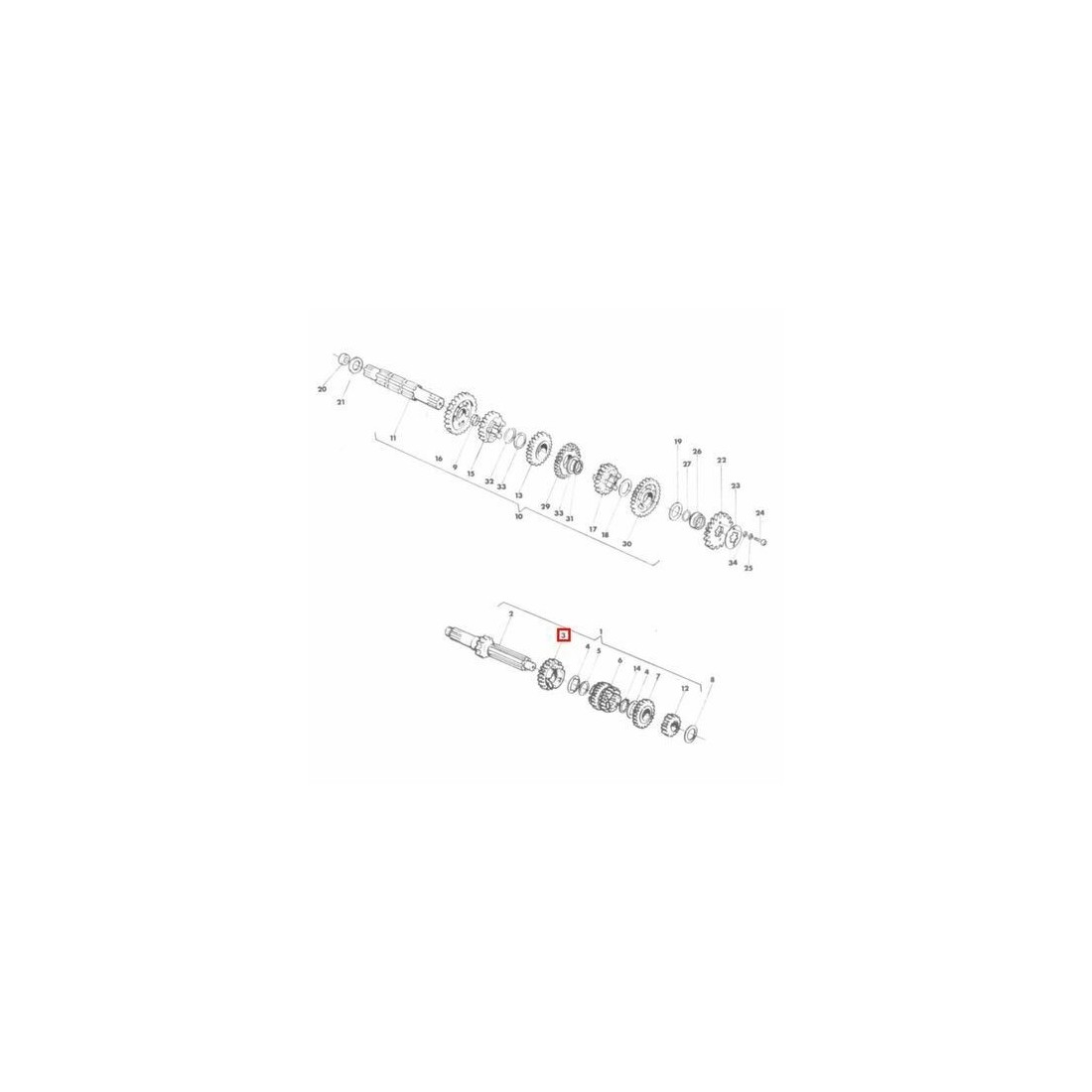 (R.12549) Vendo ingranaggio sesta velocita su albero primario da 25 denti nuovo per Cagiva Aletta Rossa 125 cc ed Elefant 125 cc originale epoca con codice 800033577 o 33577 , per misure ed esploso vedere foto