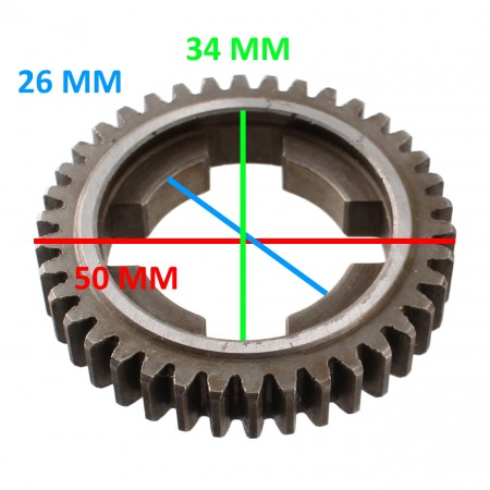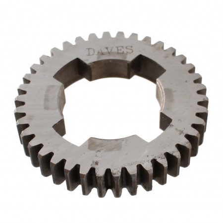 (R.13504) Vendo ingranaggio cambio 3 velocita su albero secondario nuovo da 38 denti per motore Benelli 4 velocità originale epoca con codice 69215101 o 69.21.51.01 marchiato Daves con diametri interni da 34 e 26 mm e diametro esterno 50 mm , per misure vedere foto